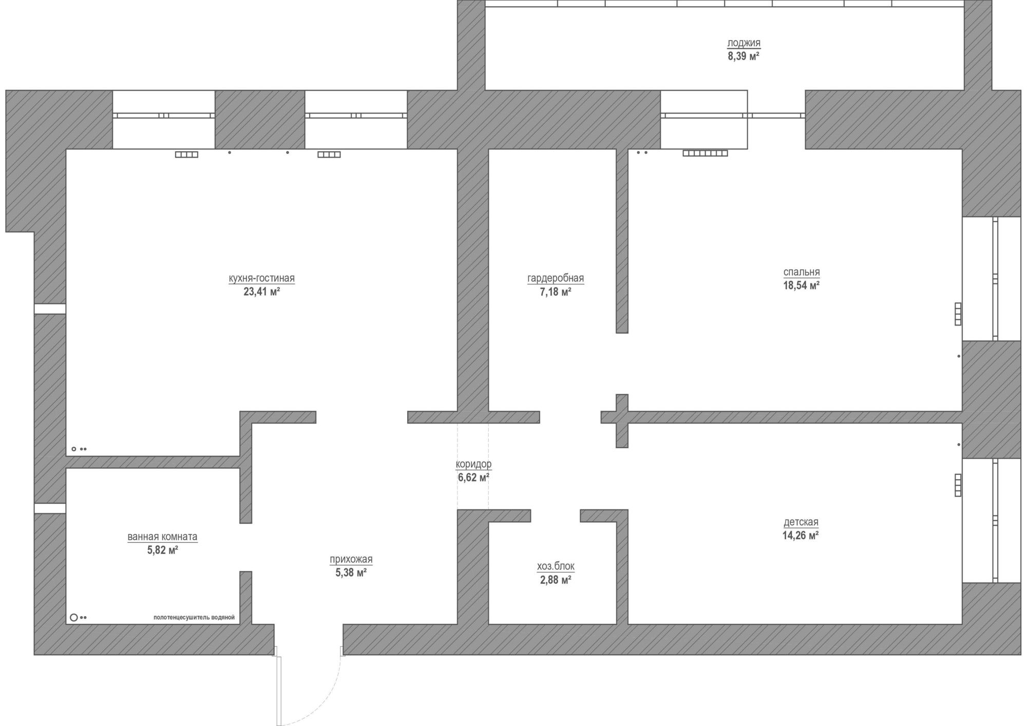 Общая площадь хорошая, но от застройщика было много неудобств: маленький санузел, вход в спальню через гардеробную комнату, а большой коридор отнимал много полезной площади. В итоге удалось сделать так, что всё встало на своё место.
